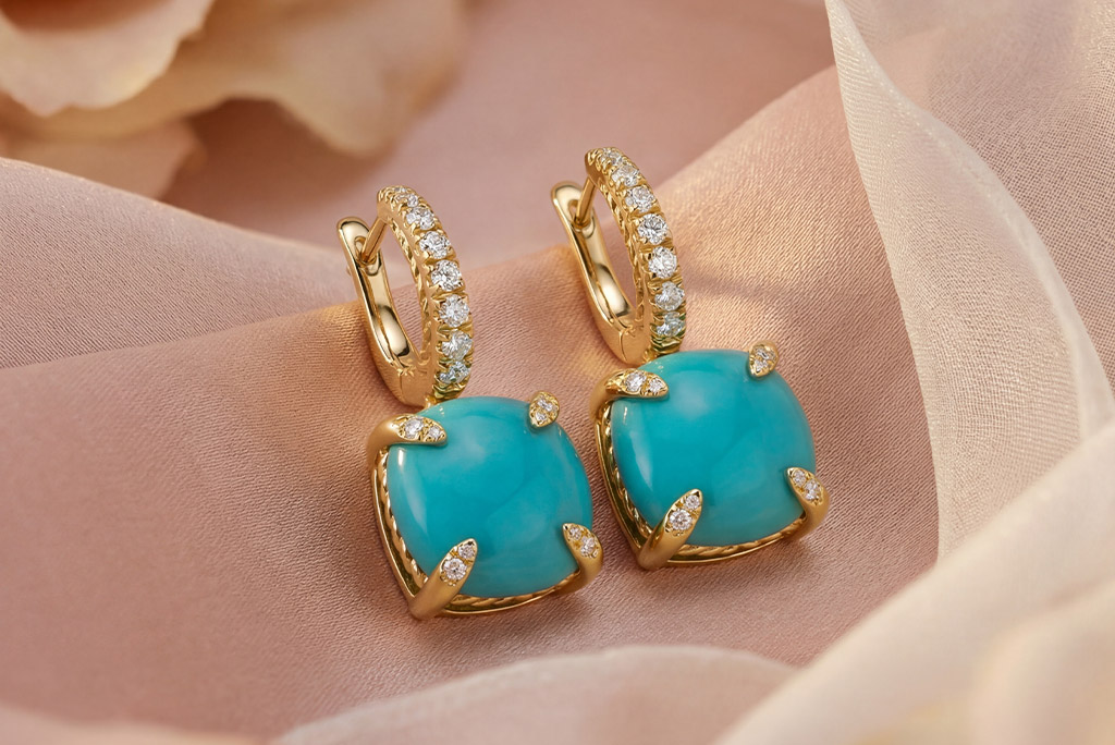 Gracefully crafted to reflect elegance and charm, these stunning Turquoise earrings radiate timeless beauty. Designed with brilliant detailing and luxurious finish, they elevate every look with sophistication and refined sparkle.