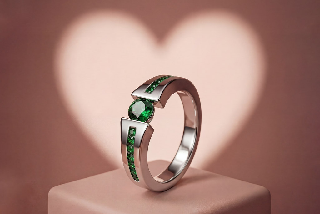 Celebrate love with a timeless Tsavorite ring crafted to shine with elegance, passion, and unforgettable brilliance.